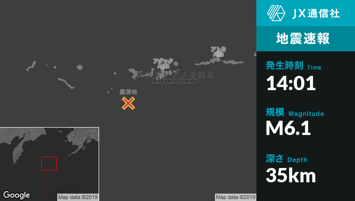 | 震源地 | アラスカのAmatignak Islandから東南東66kmの地点 |