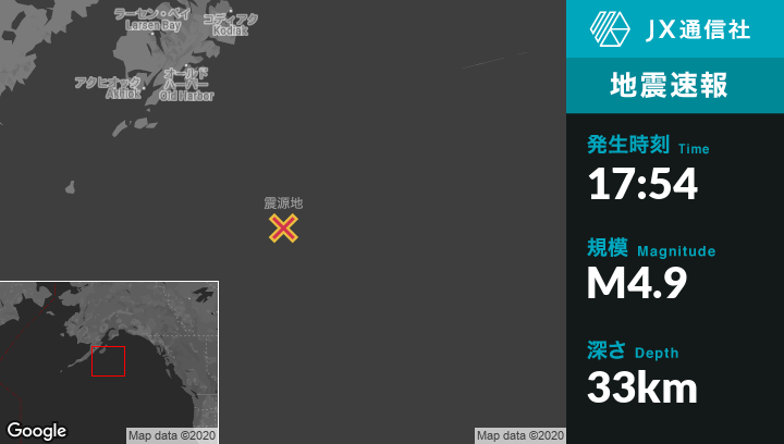 | 震源地 | アラスカのKodiakから南南東268kmの地点 |