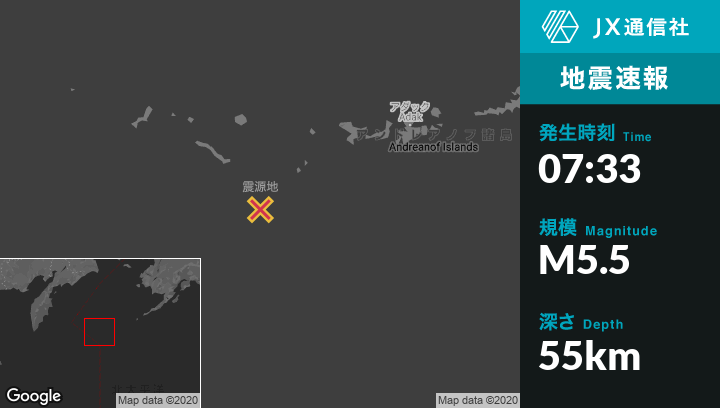 | 震源地 | アラスカのAmatignak Islandから南西79kmの地点 |