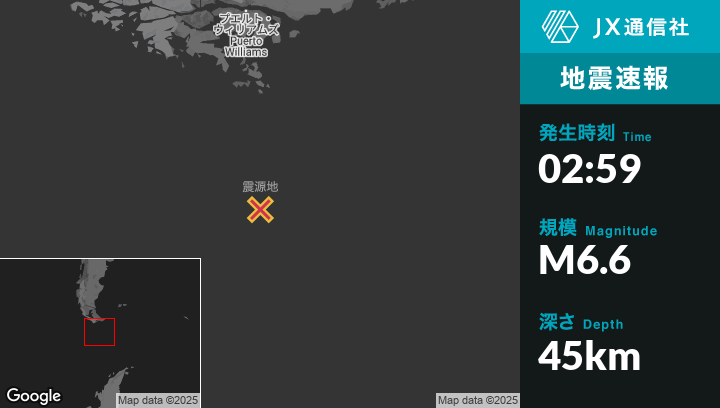| 震源地 | アルゼンチンのUshuaiaから南南東284kmの地点 |