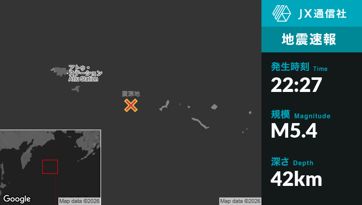 | 震源地 | アラスカのAttu Stationから東南東209kmの地点 |