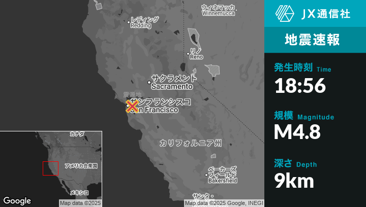 | 震源地 | カリフォルニアのBerkeleyから東南東3kmの地点 |