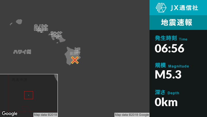 | 震源地 | ハワイのVolcanoから西南西4kmの地点 |