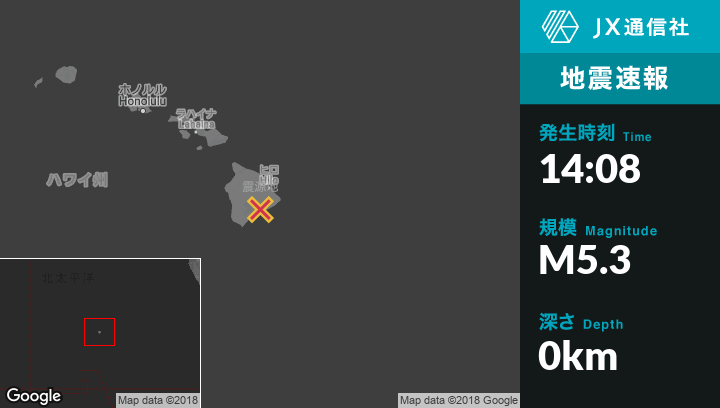 | 震源地 | ハワイのVolcanoから南西5kmの地点 |