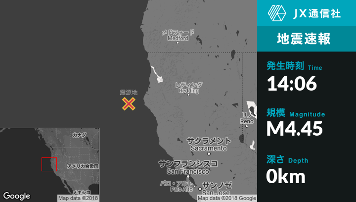 7月25日 14:06頃、カリフォルニアのFerndaleから西南西72kmの地点でM4.45の地震がありました。
