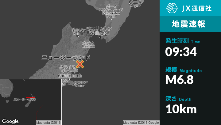| 震源地 | ニュージーランドのKaikouraから南西38kmの地点 |
