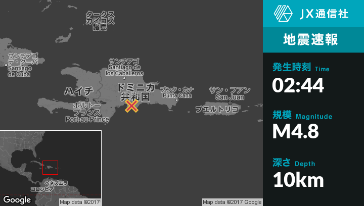 | 震源地 | ドミニカ共和国のEl Cacaoから南西11kmの地点 |