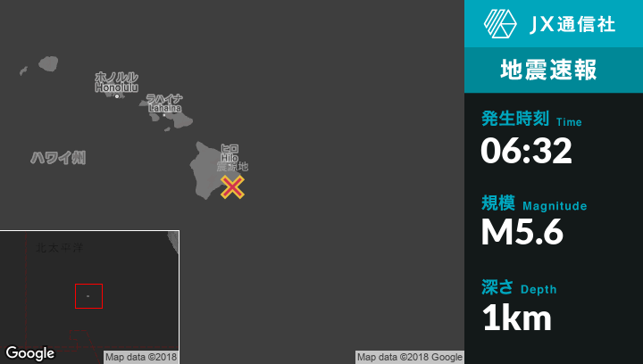 | 震源地 | ハワイのLeilani Estatesから南西18kmの地点 |