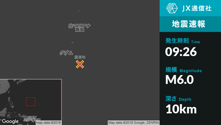 | 震源地 | グアムのInarajan Villageから東南東122kmの地点 |