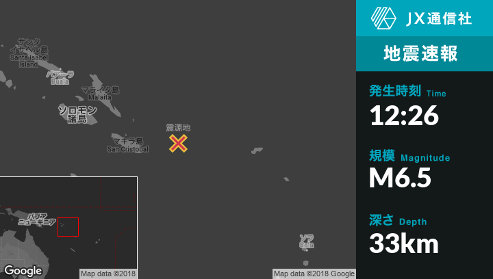 | 震源地 | ソロモン諸島のKirakiraから東162kmの地点 |