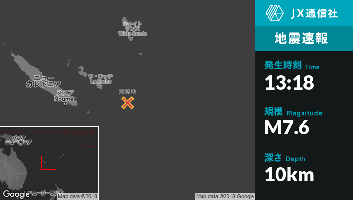 | 震源地 | ニューカレドニアのTadineから東南東153kmの地点 |