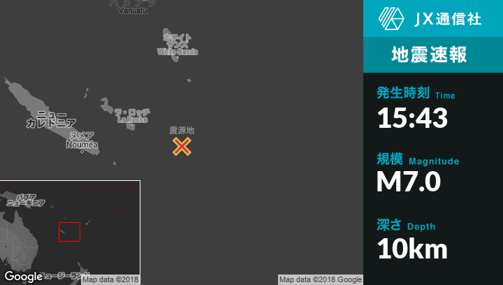 | 震源地 | ニューカレドニアのTadineから東南東183kmの地点 |