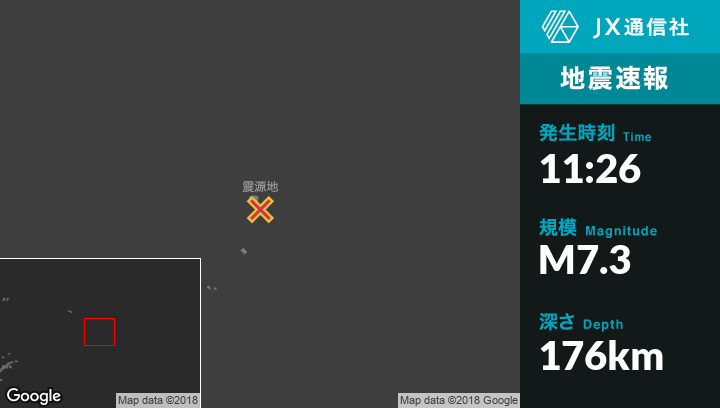 12月11日 11:26頃、南サンドイッチ諸島のBristol Islandから北北東61kmの地点でM7.3の地震がありました。
