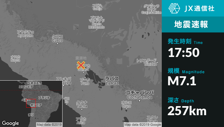 | 震源地 | ペルーのAzangaroから西10kmの地点 |