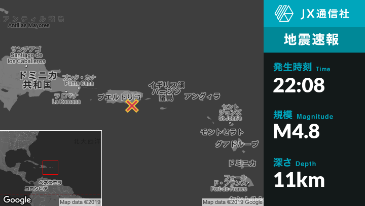 | 震源地 | プエルトリコのGuayamaから南2kmの地点 |