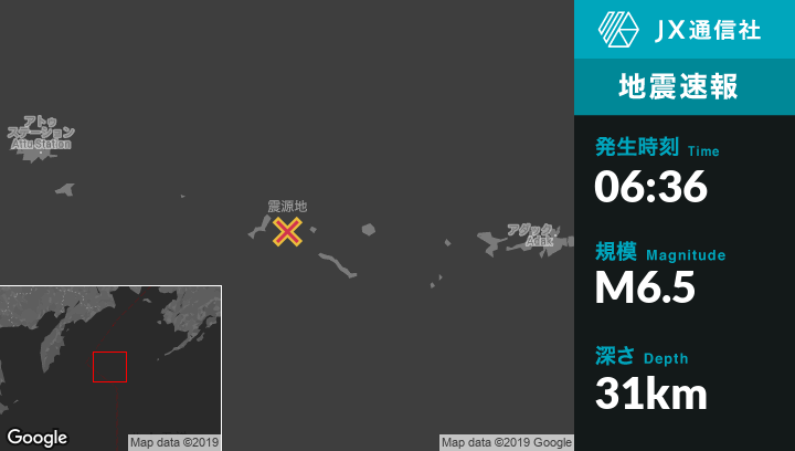 | 震源地 | アラスカのKiska Volcanoから東南東29kmの地点 |