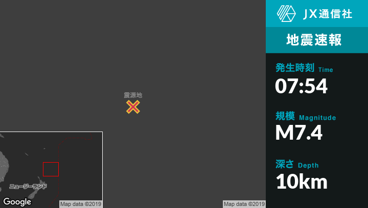 | 震源地 | ニュージーランドのL'Esperance Rockから東北東148kmの地点 |