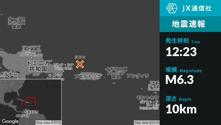 | 震源地 | プエルトリコのSan Antonioから北73kmの地点 |