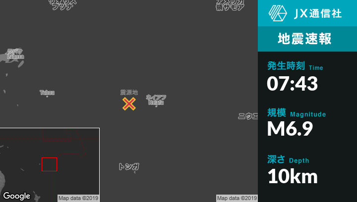 | 震源地 | トンガのNeiafuから西北西130kmの地点 |