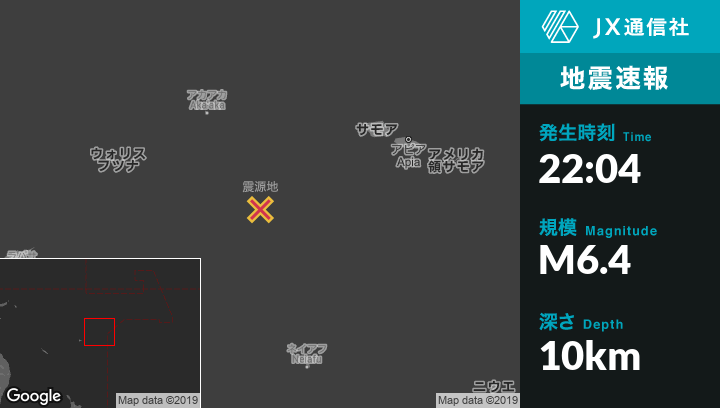 12月06日 22:04頃、トンガのHihifoから西北西158kmの地点でM6.4の地震がありました。