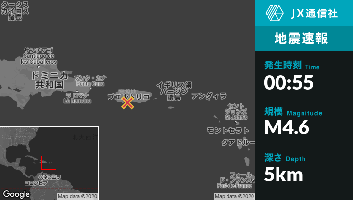 | 震源地 | プエルトリコのPenuelasから北東2kmの地点 |