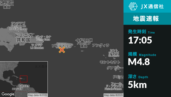 | 震源地 | プエルトリコのTallaboaから南東6kmの地点 |