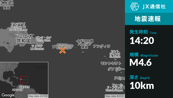 | 震源地 | プエルトリコのPonceから西南西2kmの地点 |