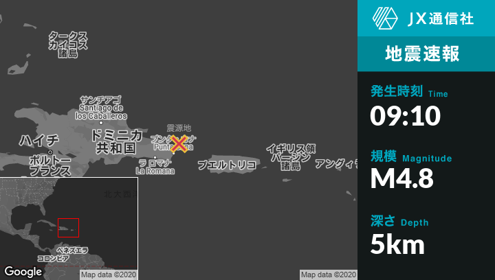 | 震源地 | ドミニカ共和国のPunta Canaから北北東47kmの地点 |