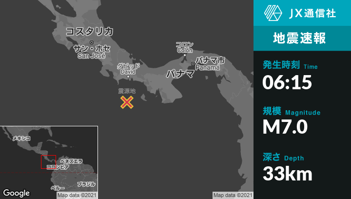 | 震源地 | パナマのPunta de Buricaから南南東82kmの地点 |