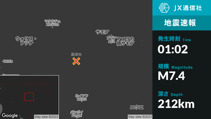 | 震源地 | トンガのHihifoから西北西73kmの地点 |