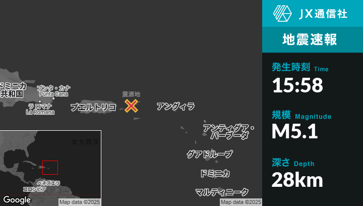 | 震源地 | 米領バージン諸島のCharlotte Amalieから西北西7kmの地点 |