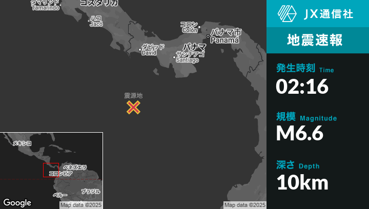 | 震源地 | パナマのBuricaから南217kmの地点 |