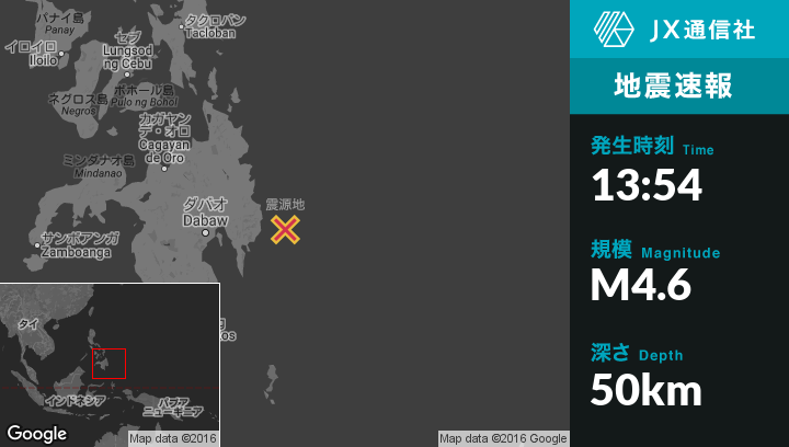 | 震源地 | フィリピンのBaculinから東51kmの地点 |