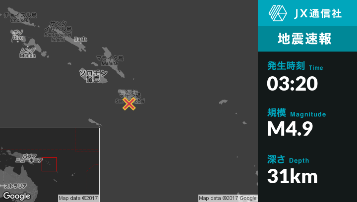 | 震源地 | ソロモン諸島のKirakiraから南南西33kmの地点 |