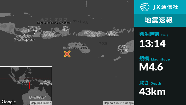 | 震源地 | インドネシアのPanenggoedeから南南西62kmの地点 |
