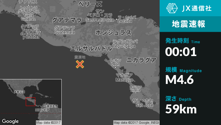 | 震源地 | エルサルバドルのLa Libertadから南79kmの地点 |