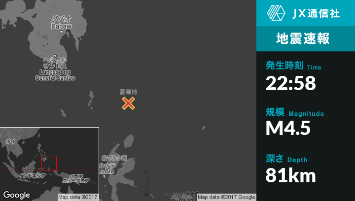 | 震源地 | インドネシアのTobeloから北268kmの地点 |