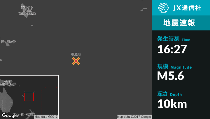 7月08日 16:27頃、ニューカレドニアのIle Hunterから東111kmの地点でM5.6の地震がありました。