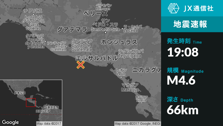 | 震源地 | エルサルバドルのAcajutlaから南南東21kmの地点 |