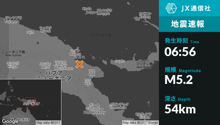 | 震源地 | パプアニューギニアのMadangから南東57kmの地点 |