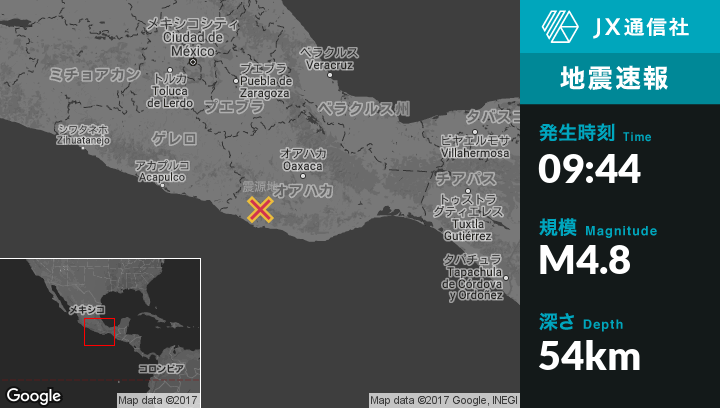 | 震源地 | メキシコのSanta Catarina Mechoacanから北東23kmの地点 |