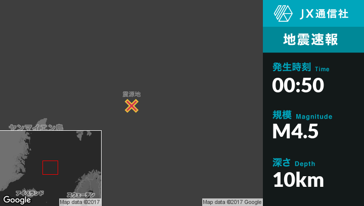 | 震源地 | スヴァールバルとヤン・マイエンのOlonkinbyenから東北東168kmの地点 |