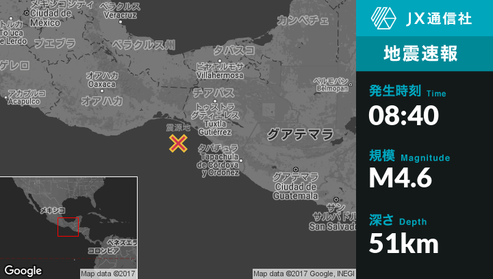 | 震源地 | メキシコのParedonから南西68kmの地点 |