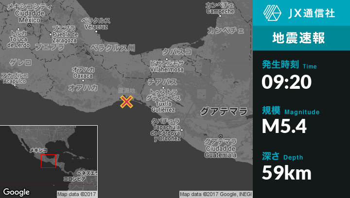 | 震源地 | メキシコのSan Dionisio del Marから南南西8kmの地点 |