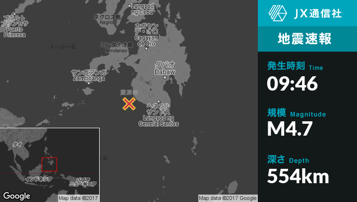| 震源地 | フィリピンのPalimbangから西南西38kmの地点 |