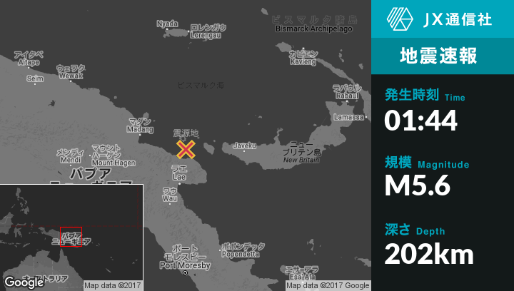 | 震源地 | パプアニューギニアのLaeから北131kmの地点 |