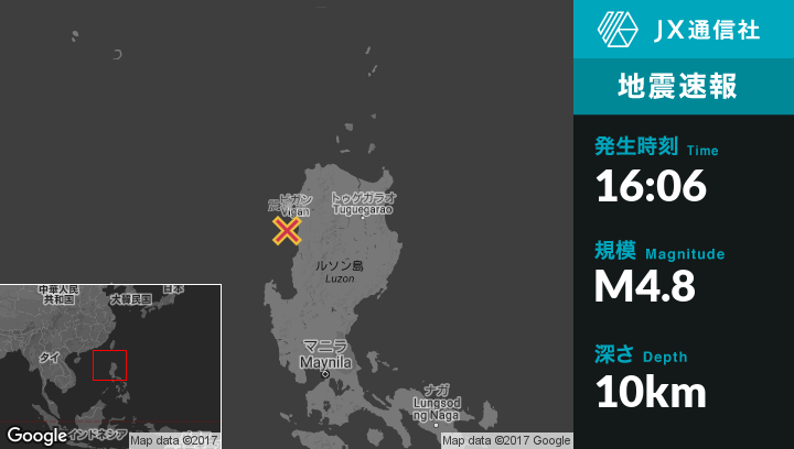 10月19日 16:06頃、フィリピンのFuerteから西南西16kmの地点でM4.8の地震がありました。