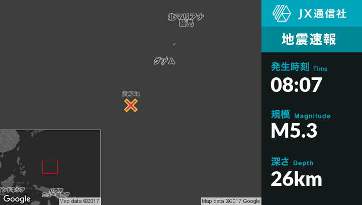 | 震源地 | グアムのMerizo Villageから南西230kmの地点 |