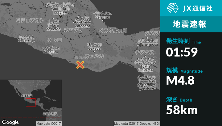 | 震源地 | メキシコのSantiago Jamiltepecから東8kmの地点 |