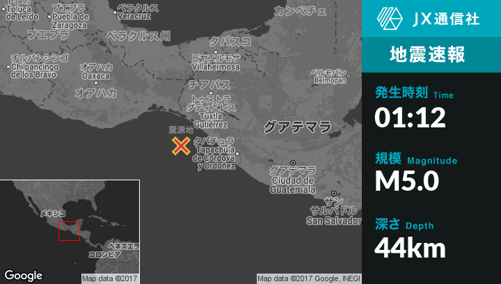 | 震源地 | メキシコのTres Picosから南西86kmの地点 |